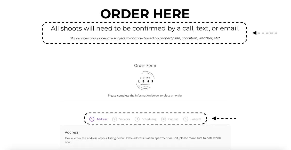 *Now your order is placed, congratulations! Look out for a confirmation text, email, or call. You will access your media through an email or via the portal by pressing the log in button at the top of the screen. There you will pay, then you'll be able to download your media, and the property will be sold before you know it!!!