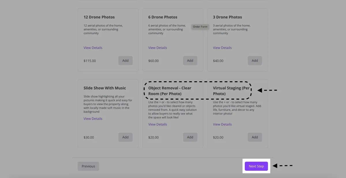-Notice we have photo, video, drone, 3D tour, and other services like virtual staging or object removal