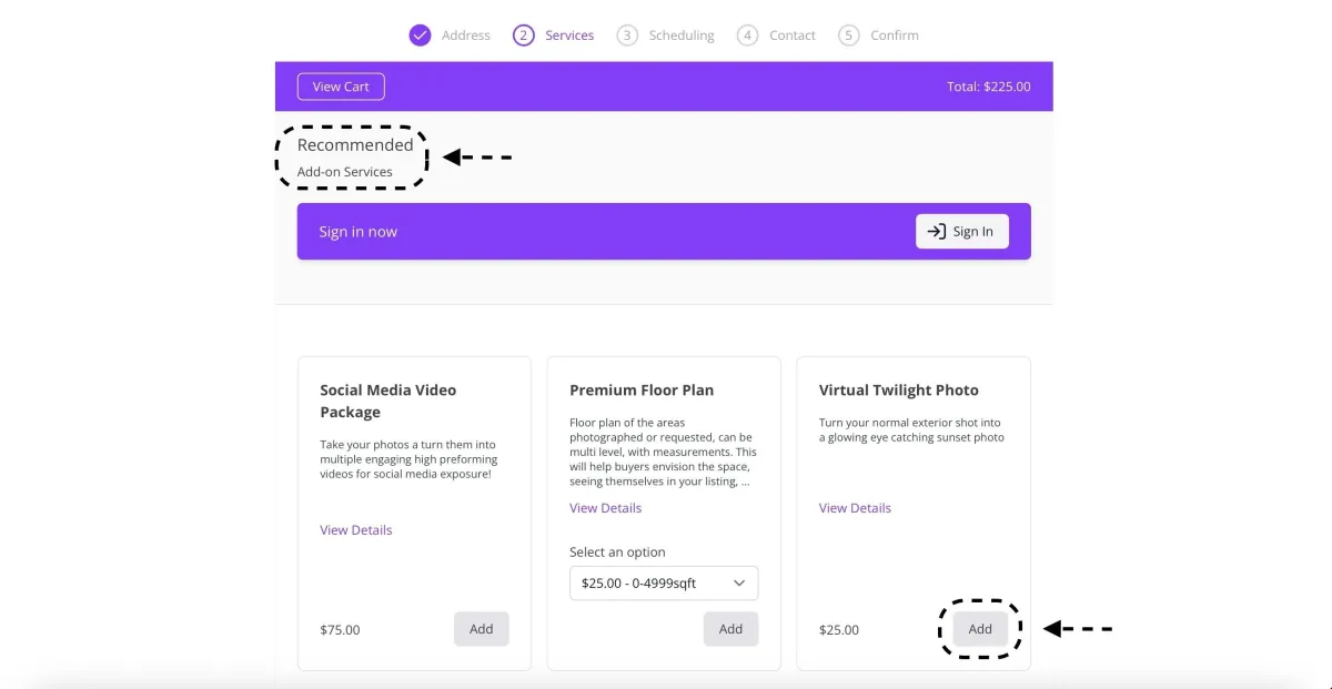 -Find the service(s) you'd like, select from the drop down if needed, then press the add button below the service you'd like